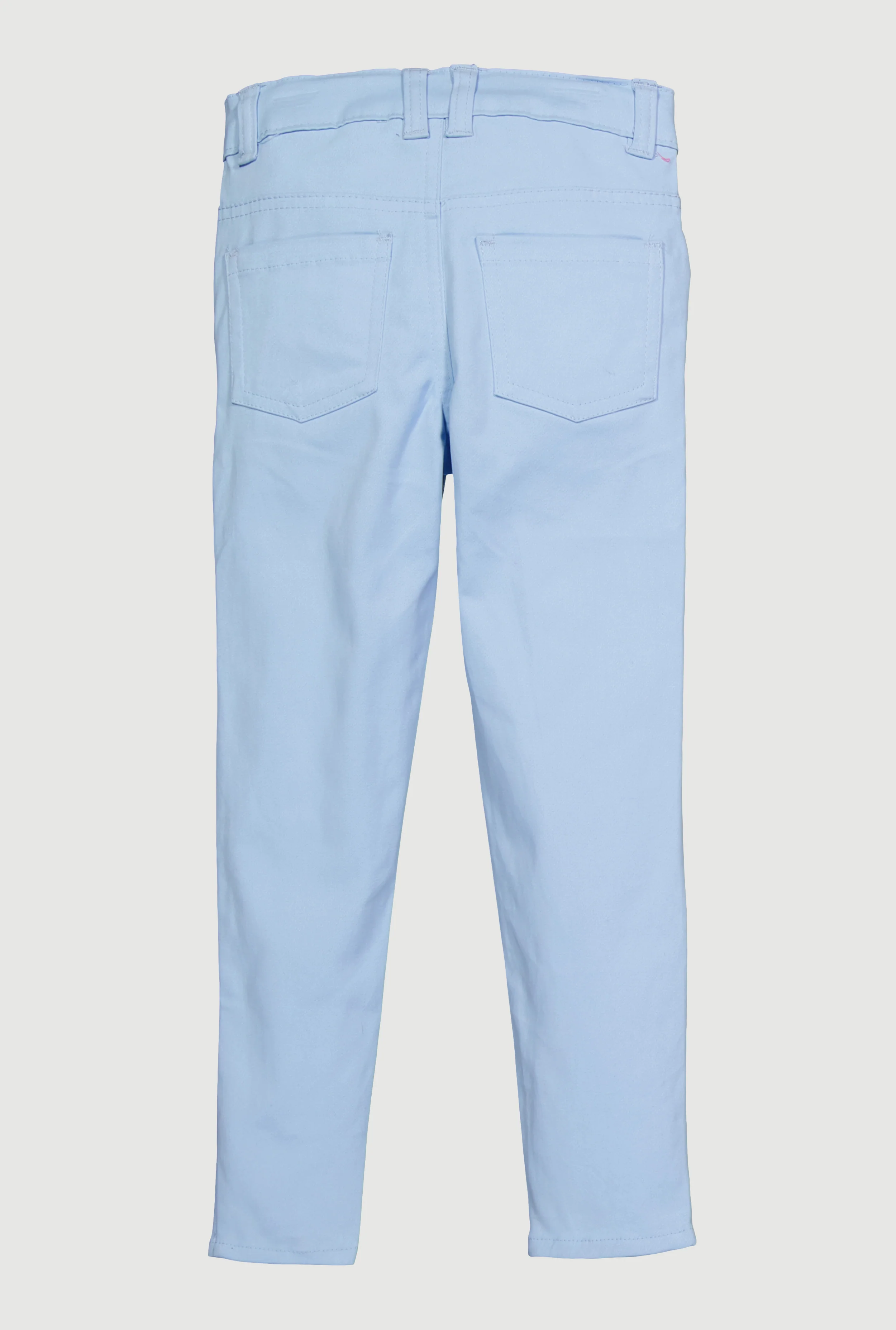 Step up her style game with these Little Girls Rhinestone Butterfly Hyper Stretch Skinny Pants. Designed for comfort and a perfect fit, these pants feature an adjustable waist and a flattering mid rise. The full length skinny leg cut pairs effortlessly with any casual top, while the sparkling rhinestone butterfly detail adds just the right touch of sparkle to make her stand out. Made from soft twill with hyper stretch fabric, these pants move with her every step, making them ideal for playdates or everyday adventures.