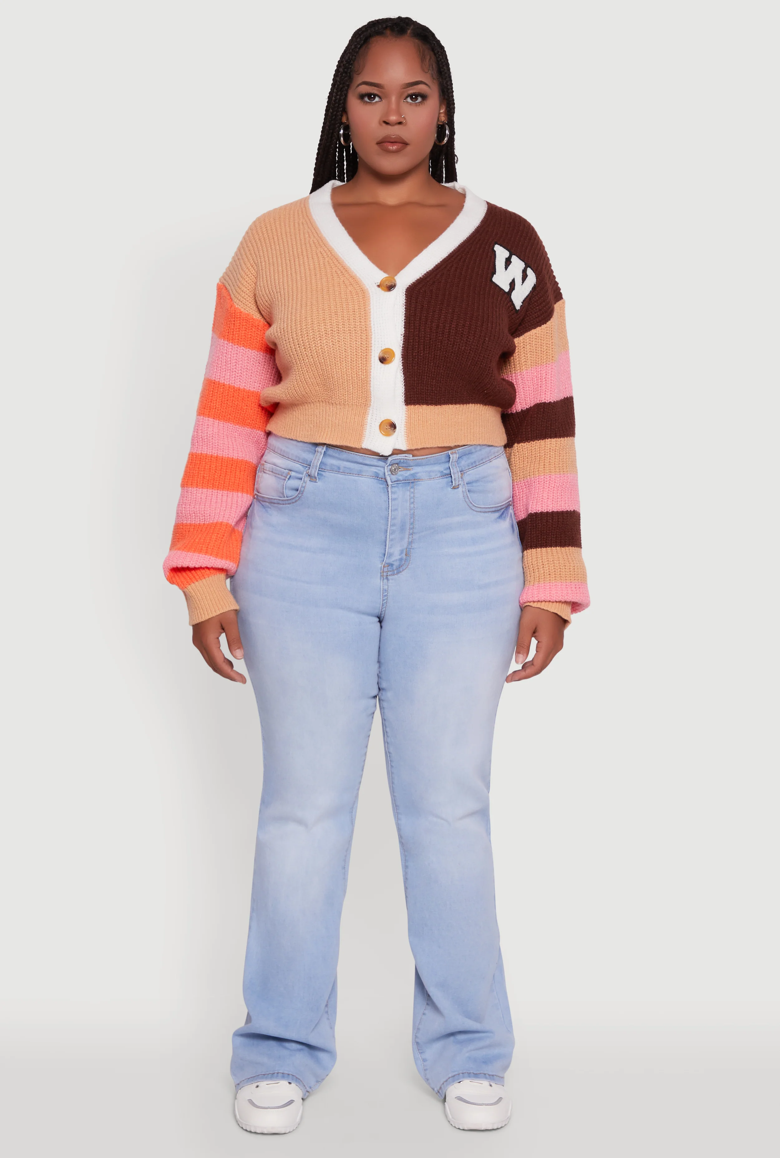 Plus Size Daisy Color Blocked Striped W Initial Cardigan
