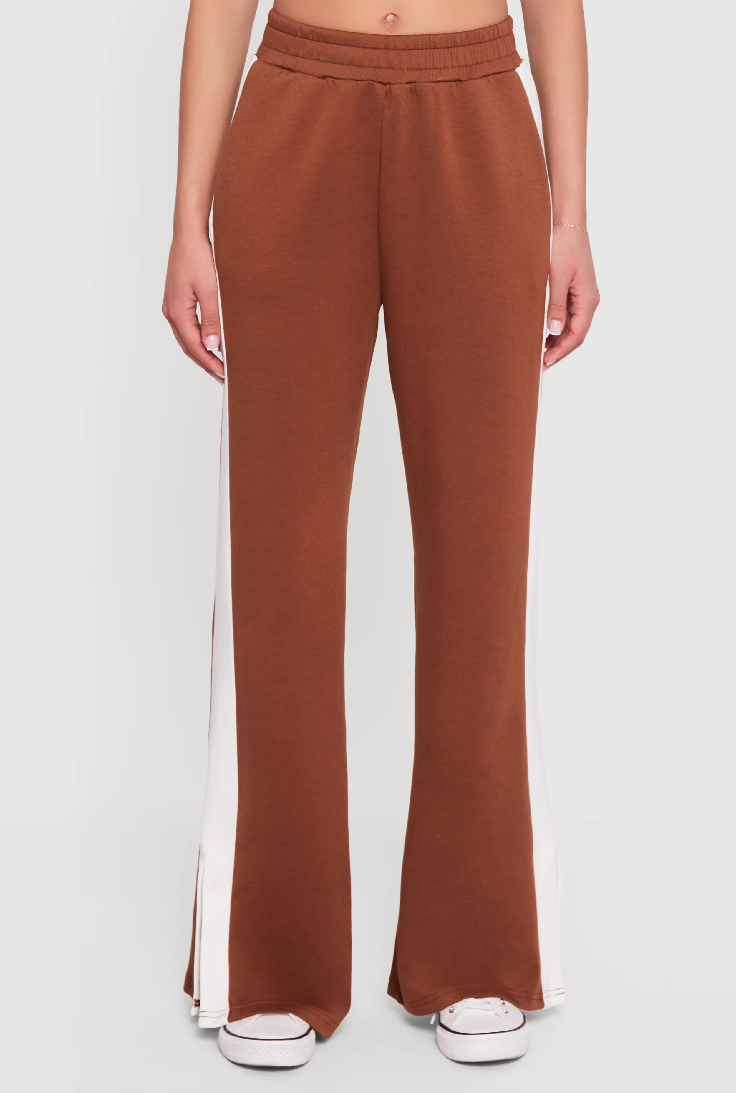 Step up your casual game with the Scuba Side Stripe Pull On Straight Leg Pants. Designed for effortless style and comfort, these pants feature a sleek mid-rise fit and straight leg silhouette that flatters every shape. The pull-on design with an elastic waist means no fuss, just slip them on and go. Side stripes and subtle side slits add a sporty edge, making these pants perfect for your activewear or athleisure looks. Whether you're running errands or chilling with friends, these pants bring the perfect mix of laid-back vibes and trendy details.